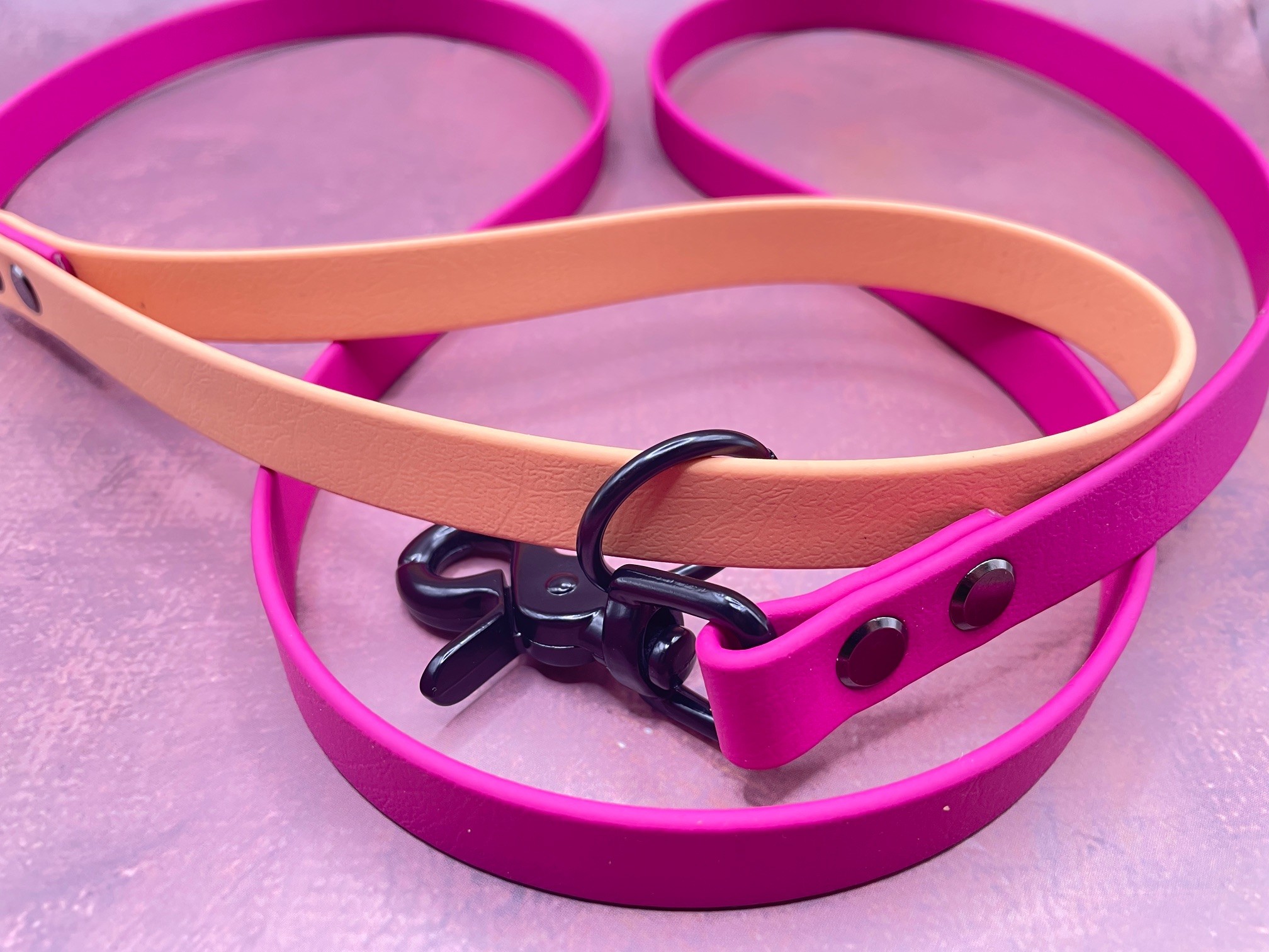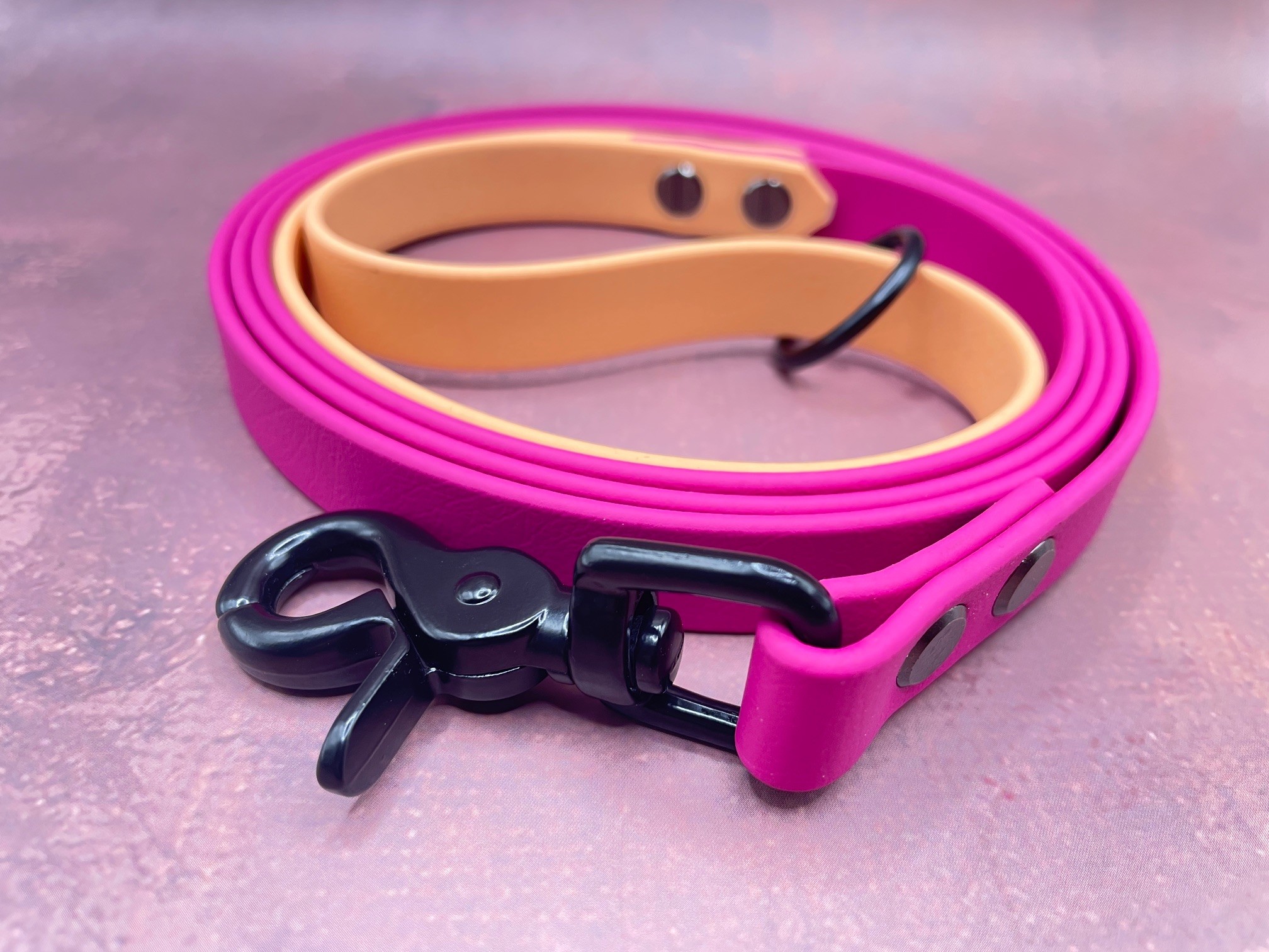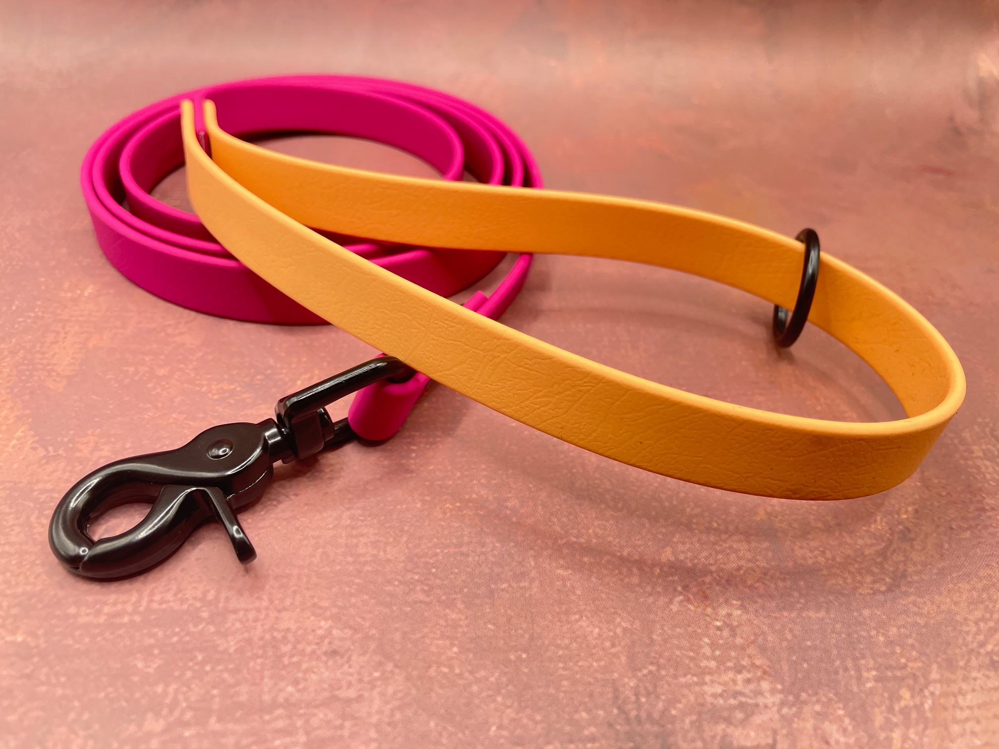 Die Farben der Biothane sind Magenta Rosa und Glamour Colden Copper
