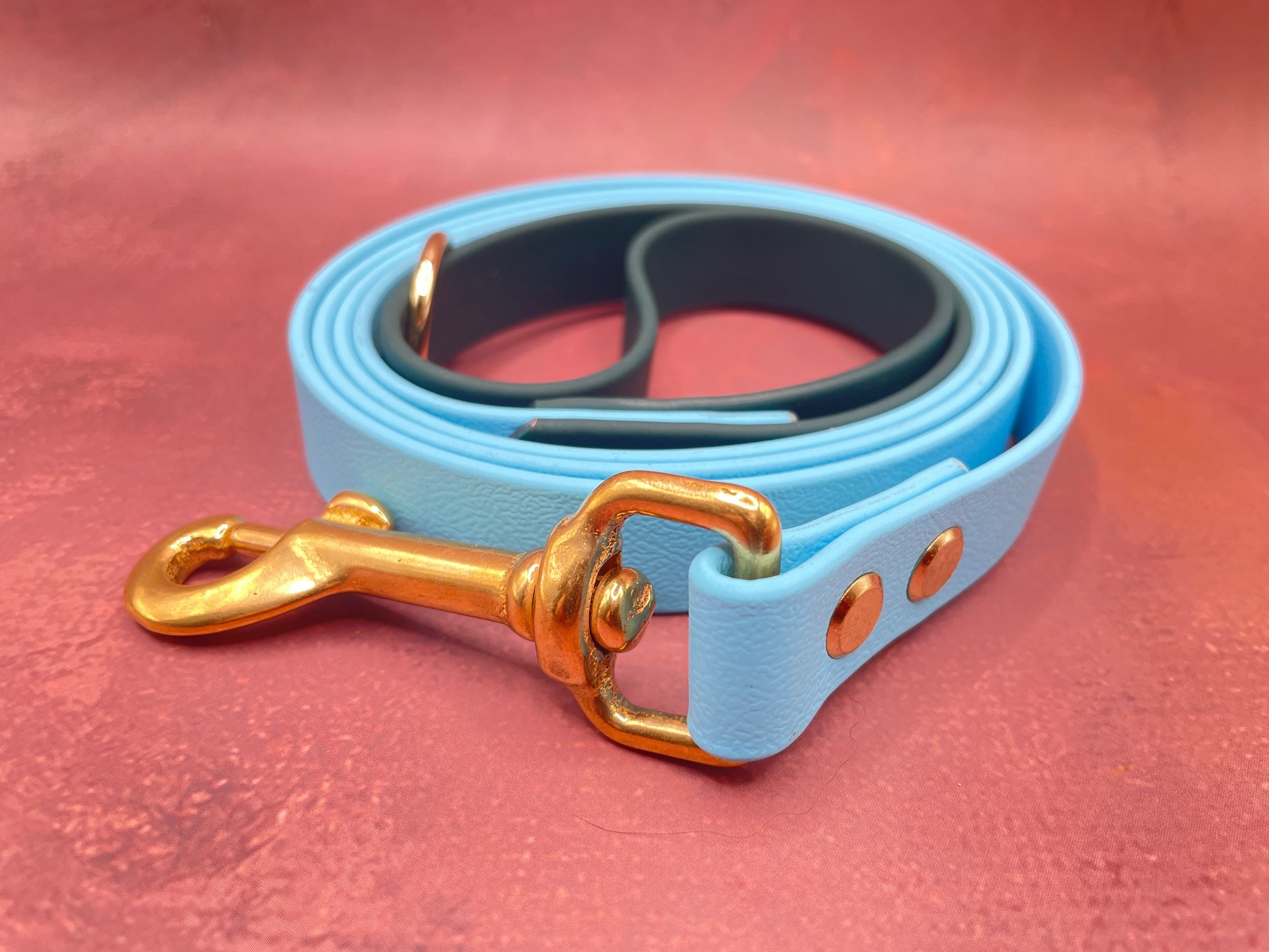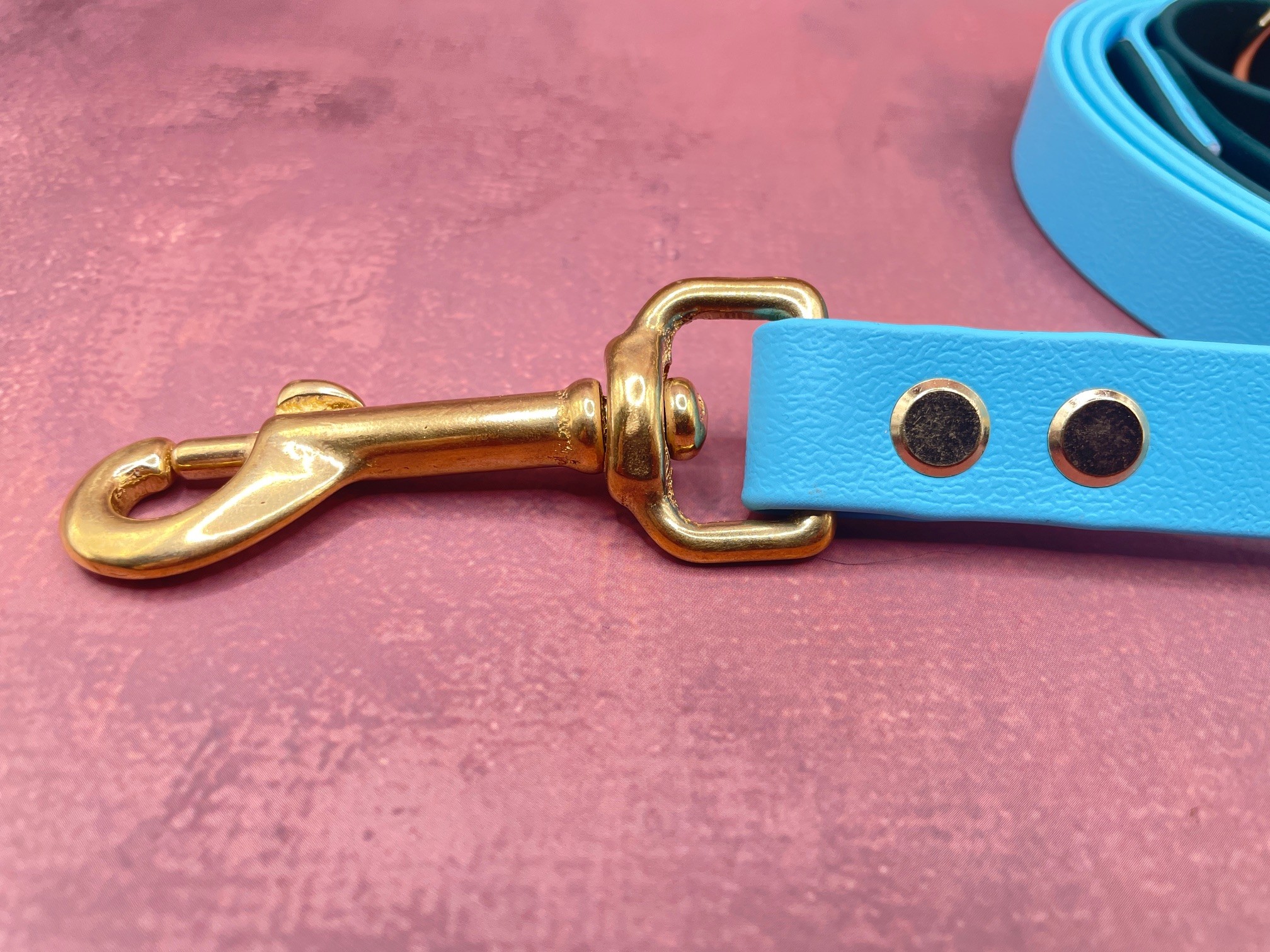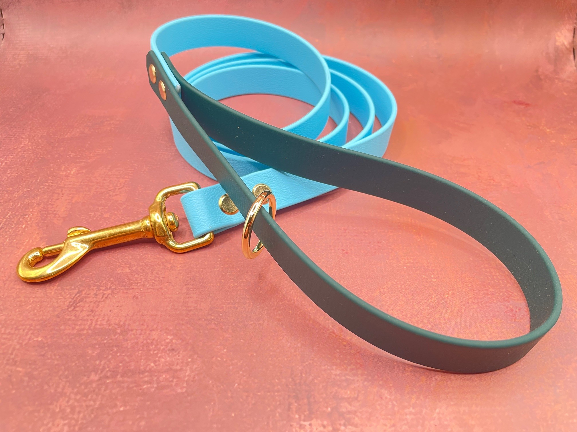 Die Farben der Biothane sind Skyan Blau und Dunkelgrün