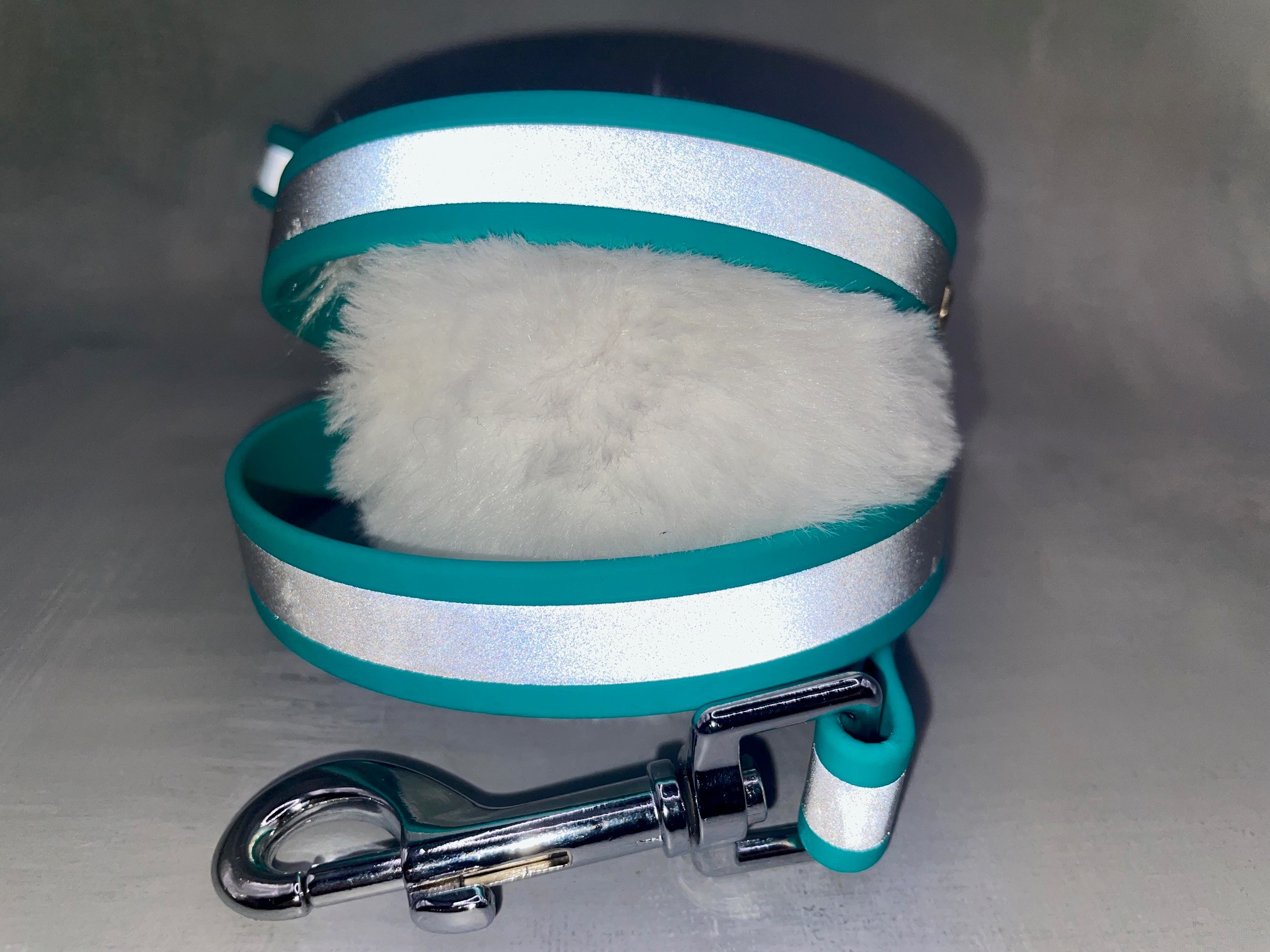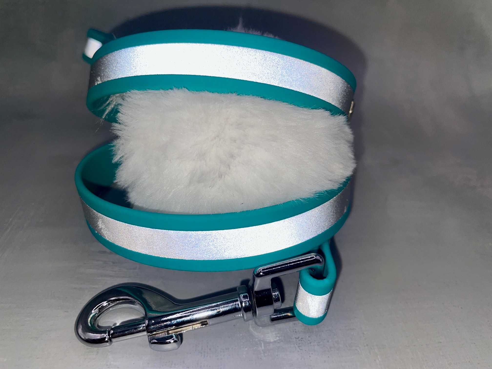 Die Farbe der Biothane ist Türkis ( reflektierend )