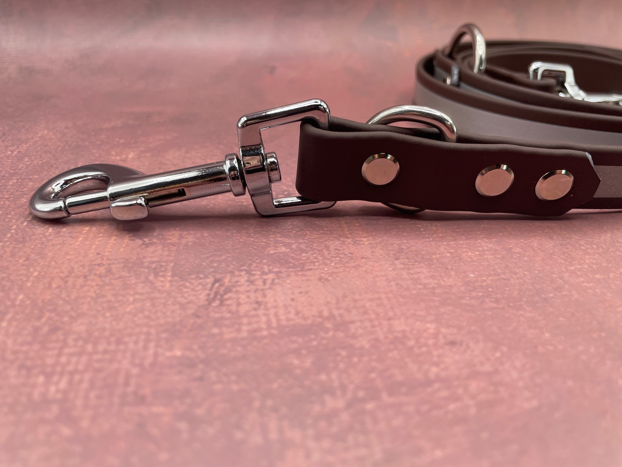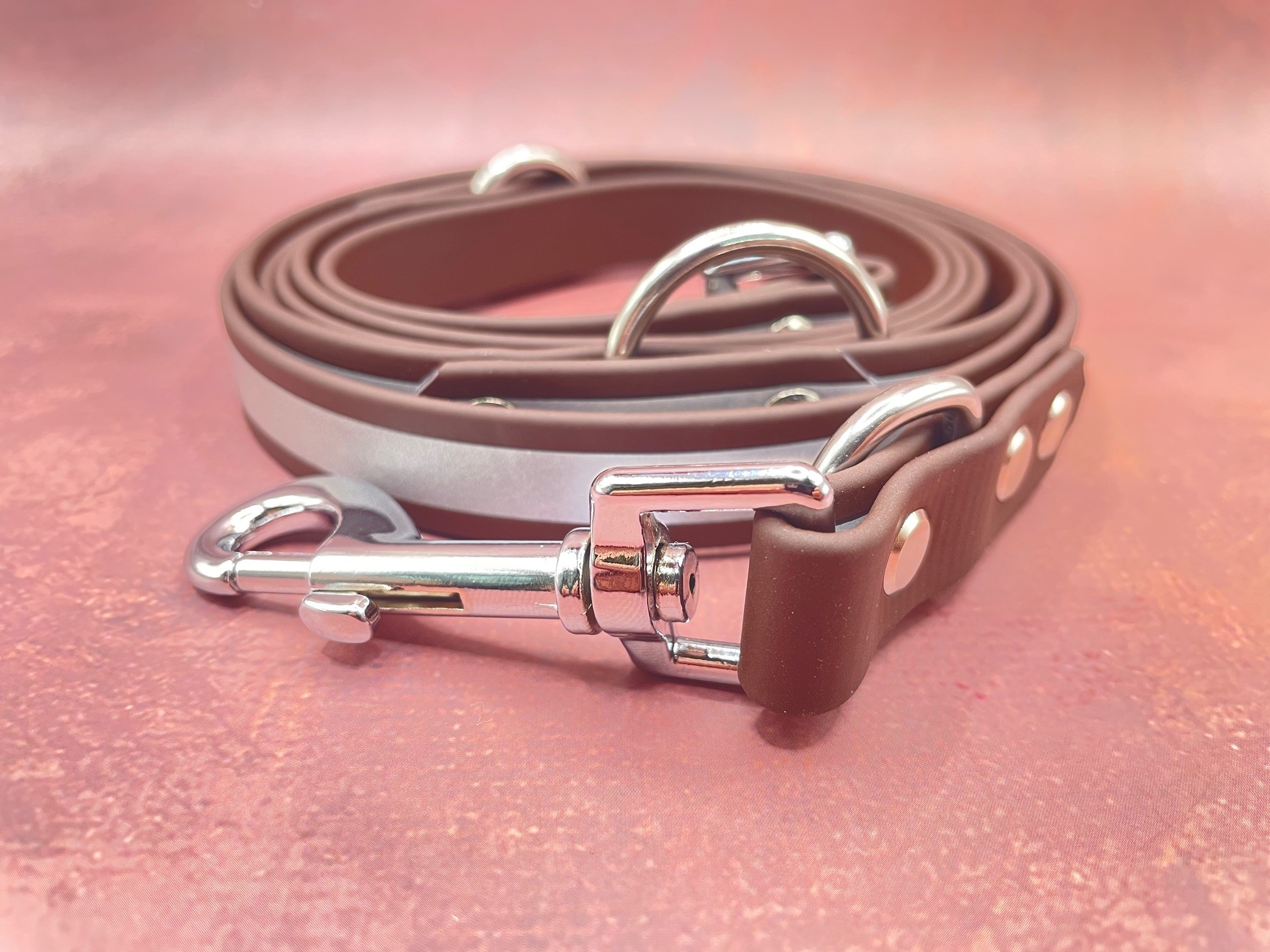 Die Farbe der Biothane ist Dunkelbraun ( reflektierend )