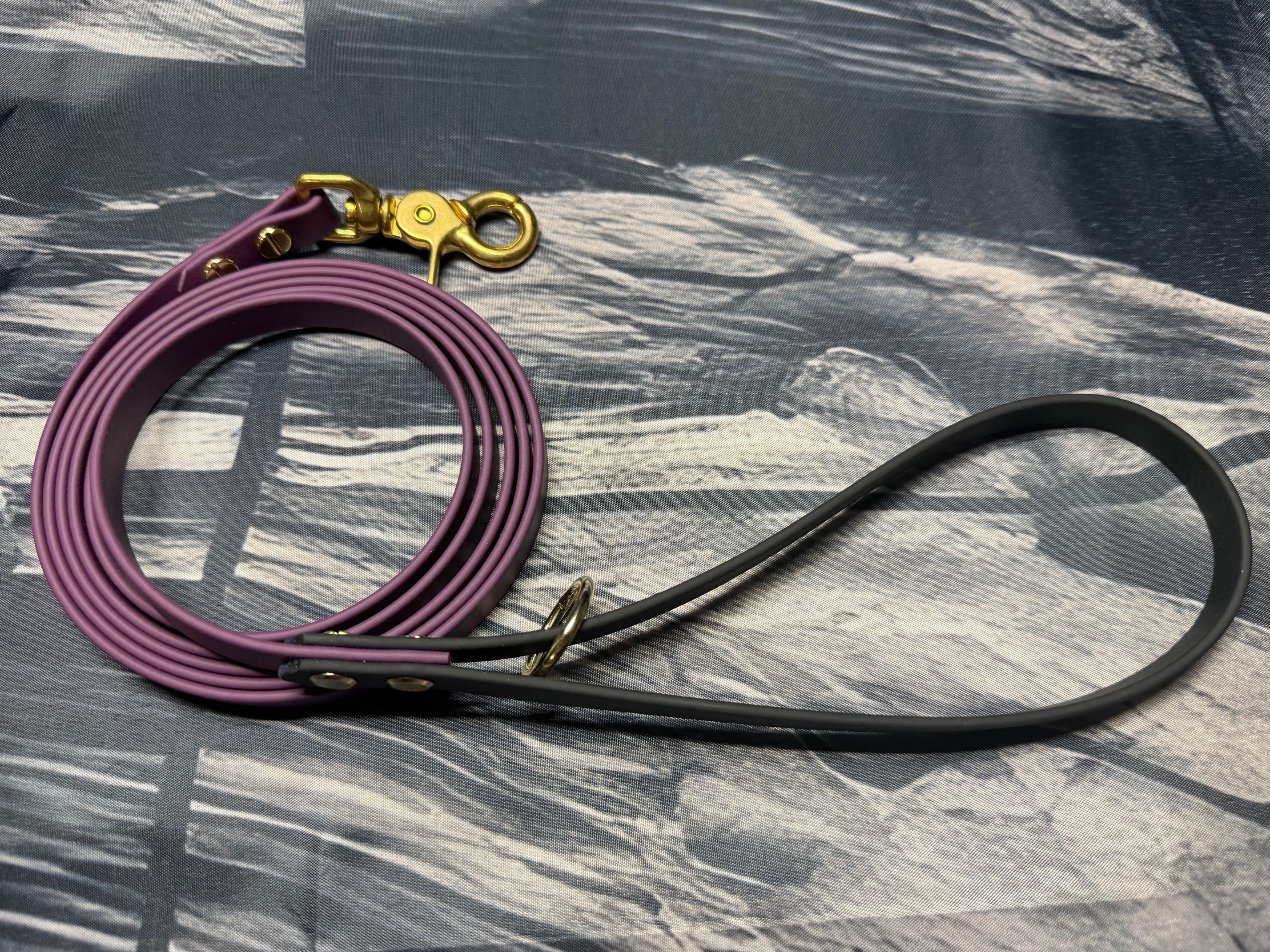 Die Farben der Biothane sind Aubergine und Schwarz