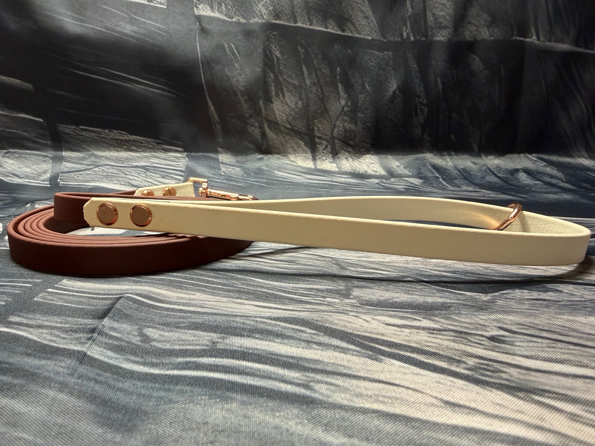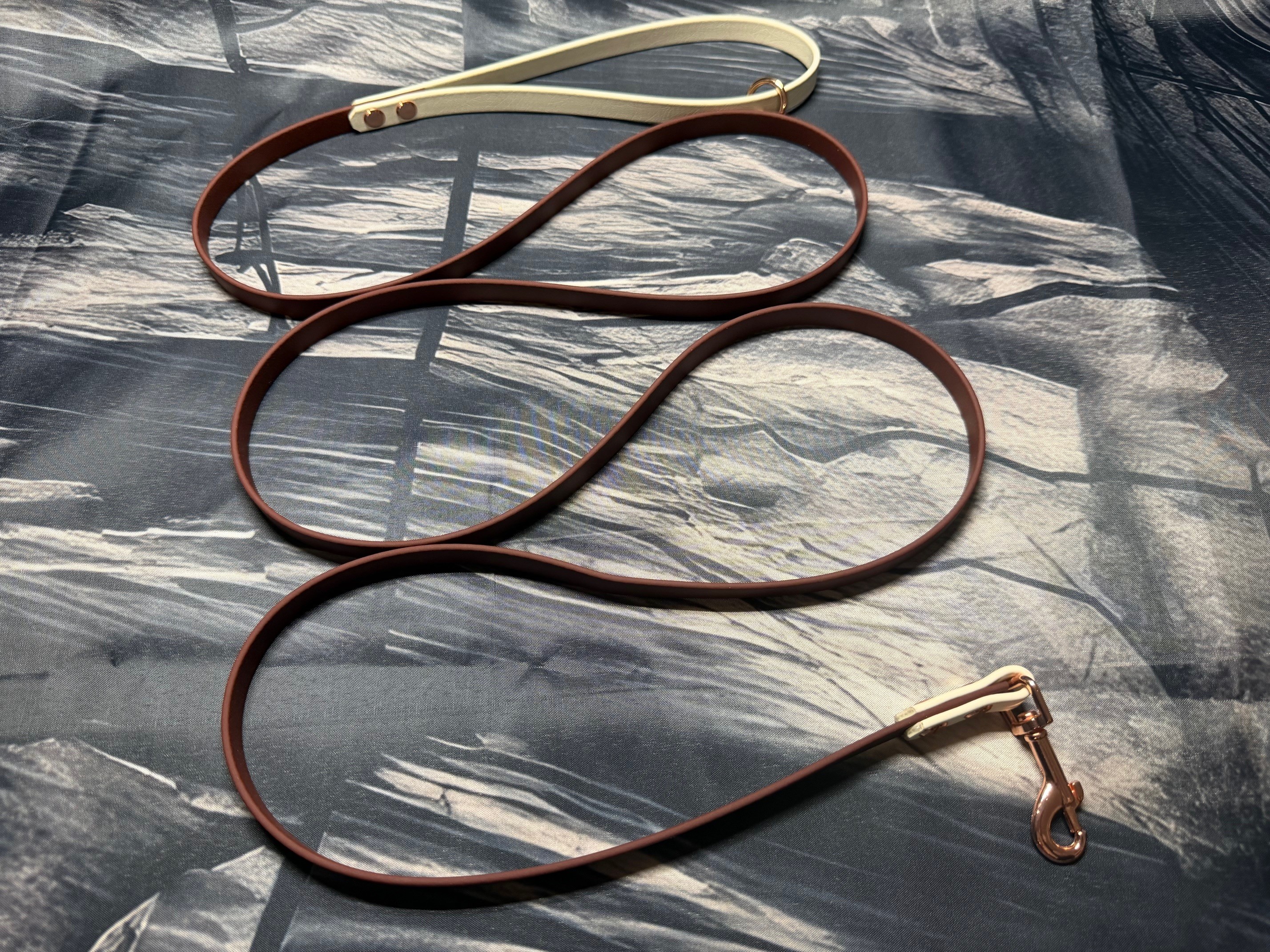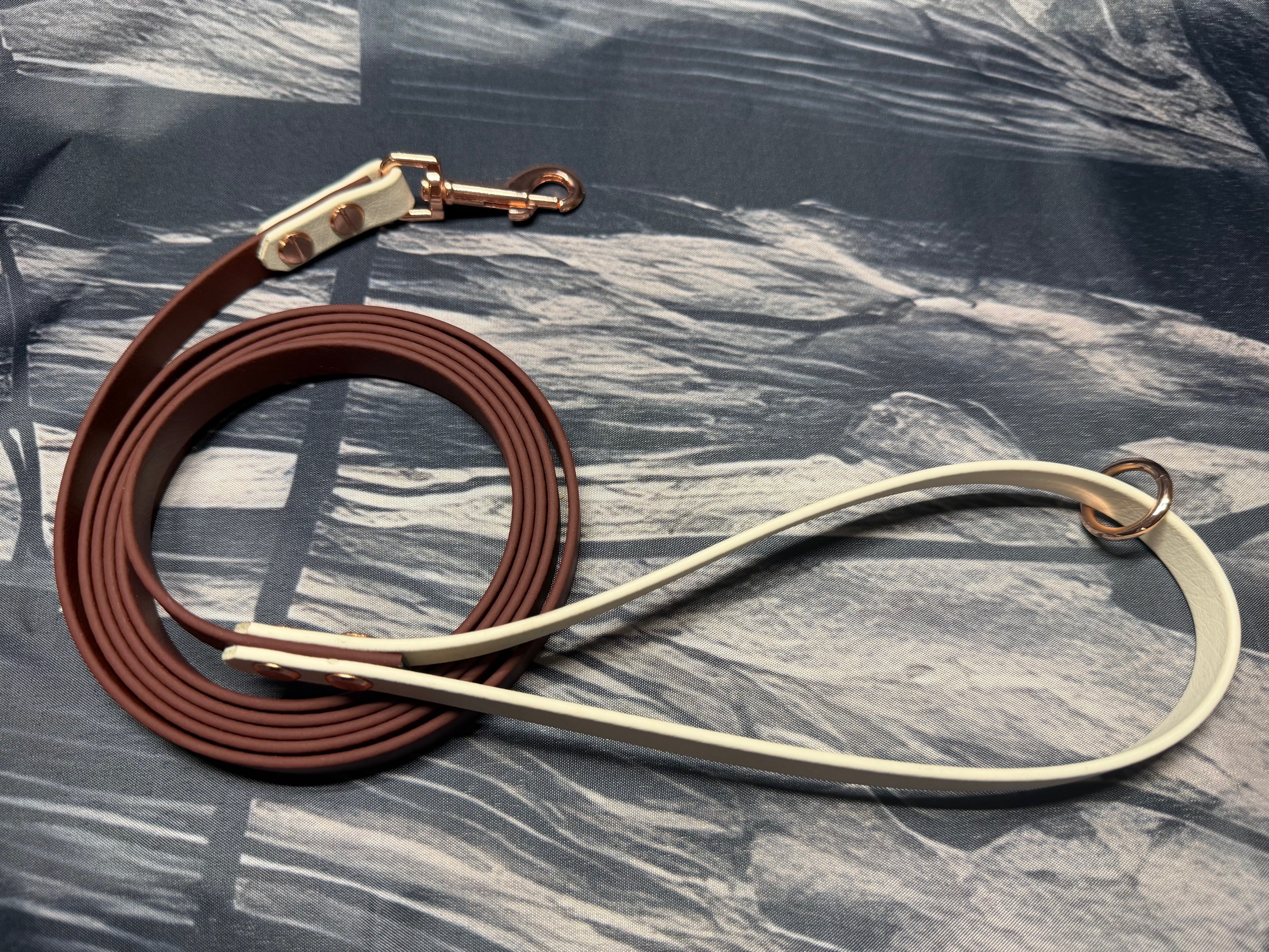 Die Farben der Biothane sind Saddle Brown und Arctic Wolf