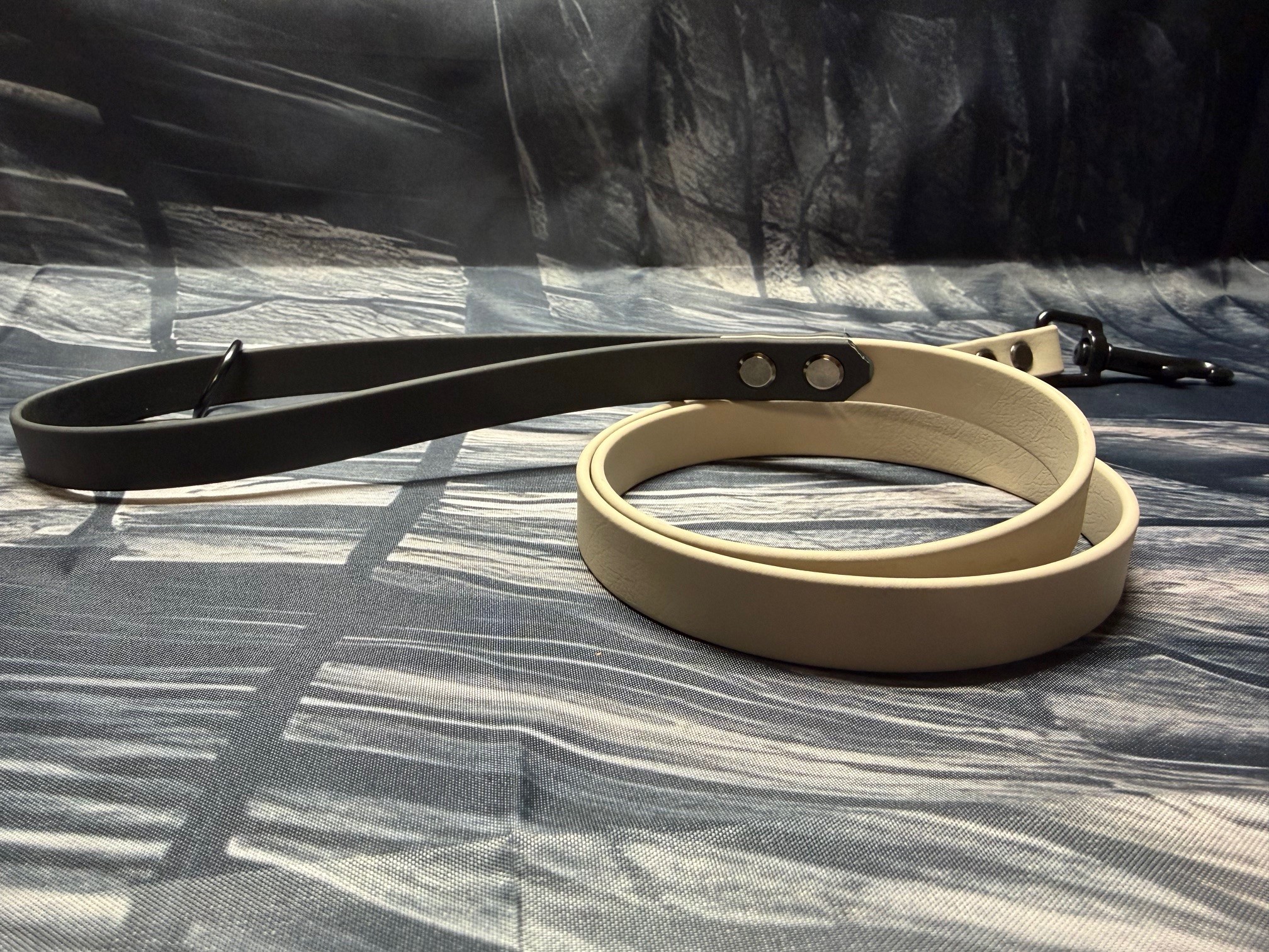 Führleine zweifarbig , 16 mm , 100 cm , Biothane Taupe und Schwarz , Hardware Schwarz