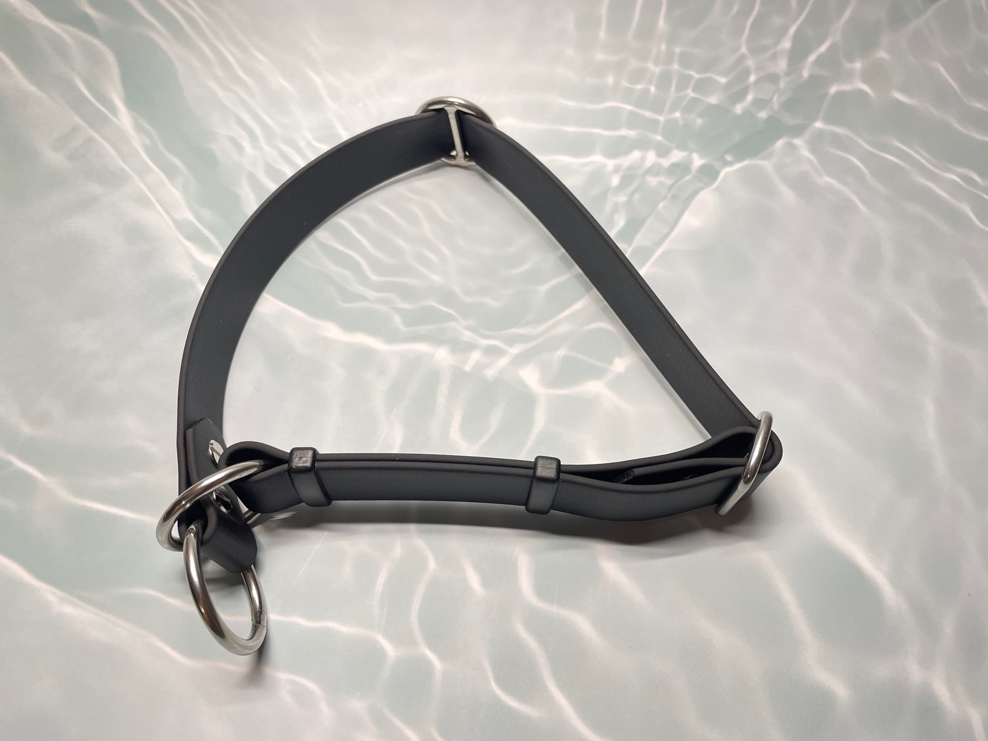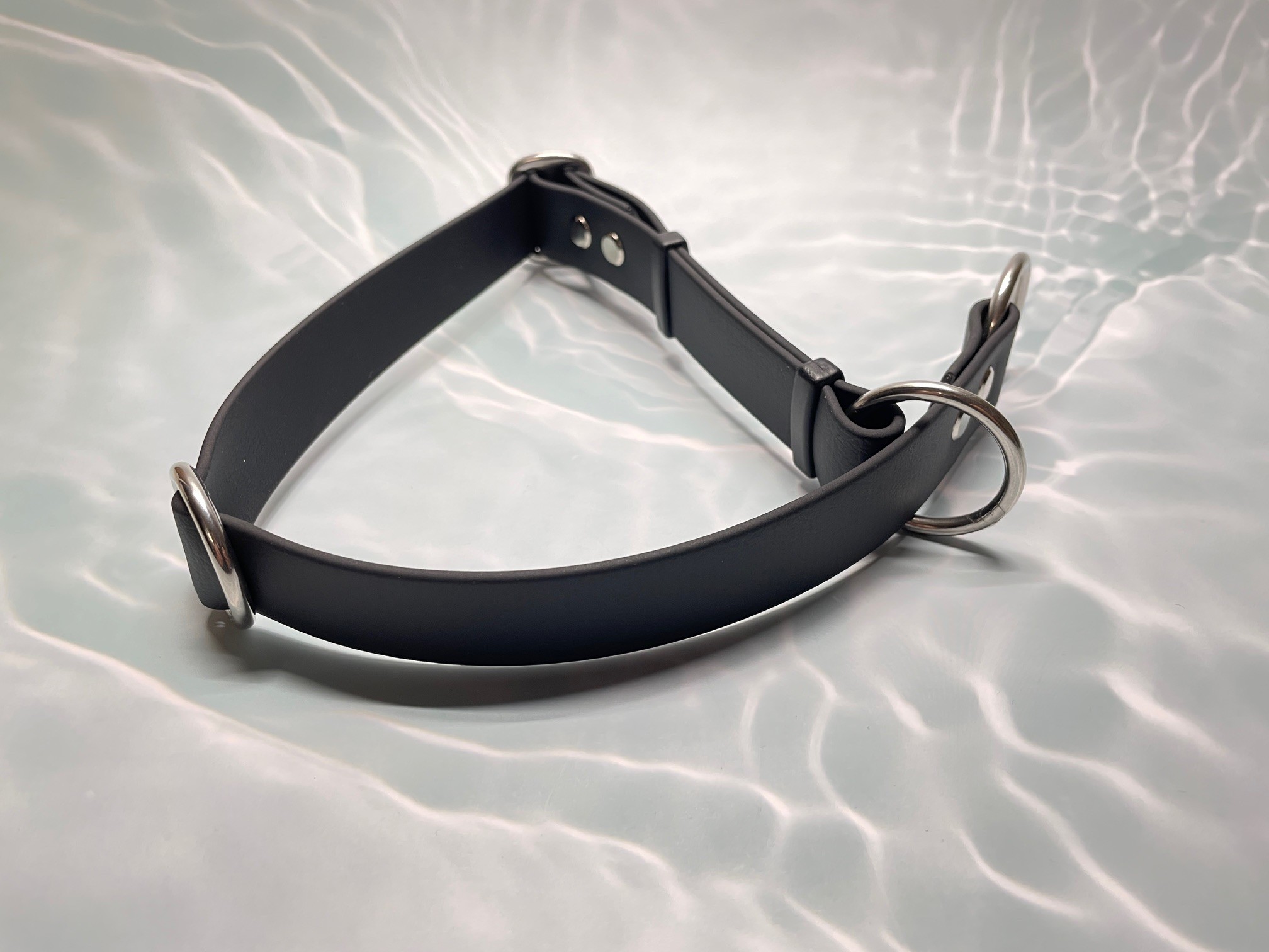 Mitwachsendes Halsband , 25 mm , 38 - 55 cm , Biothane Schwarz , Hardware Silber