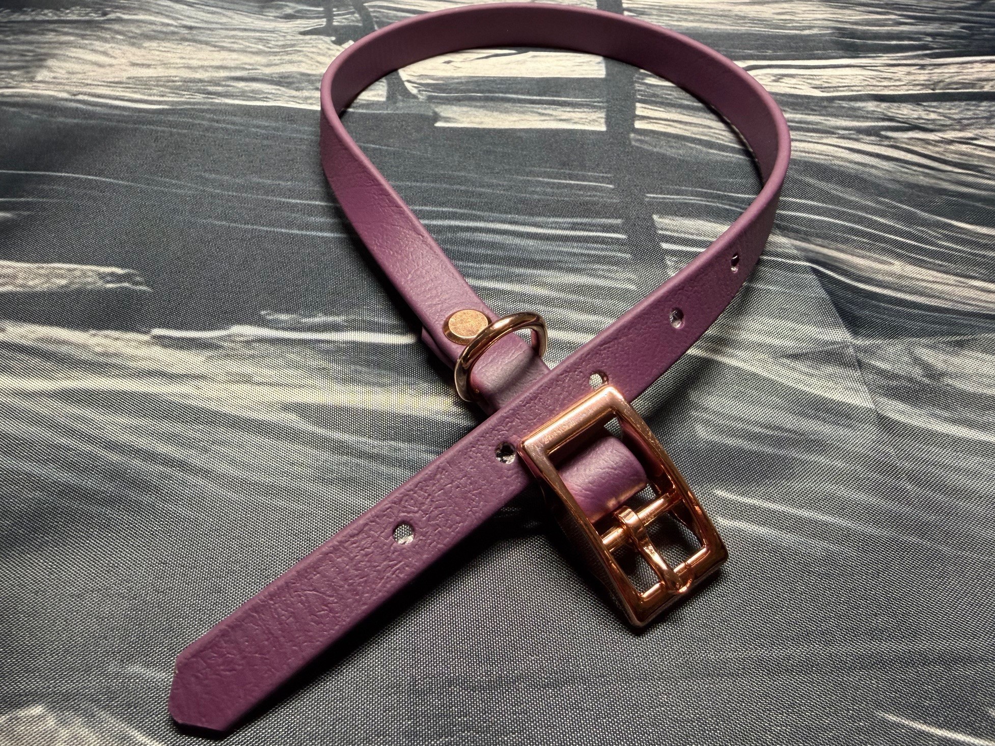 Schnallenhalsband , 13 mm , 36 - 44 cm , Biothane Aubergine , Hardware Roségold