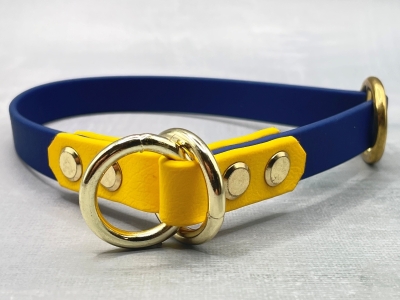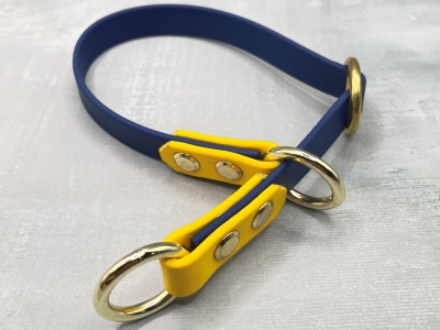 Die Farben der Biothane sind Navy Blau und Sonnengelb