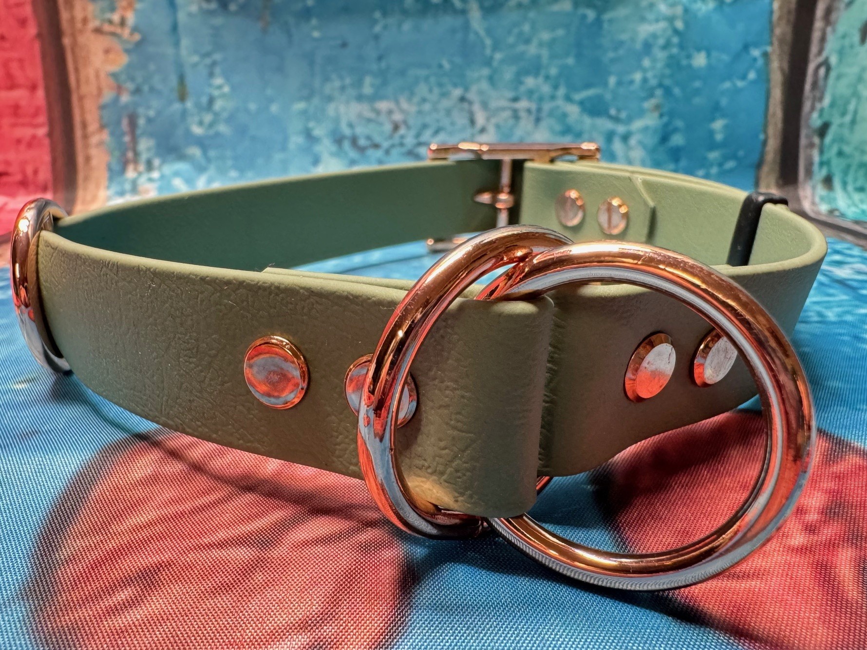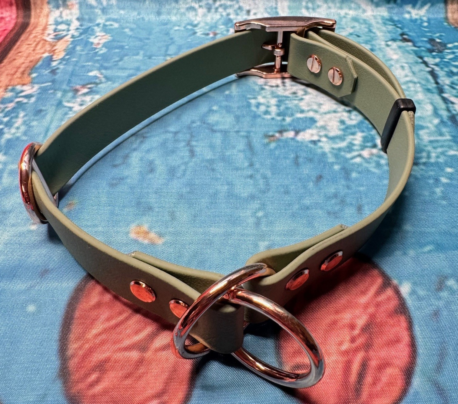 Zugstopphalsband verstellbar mit Schnalle , 25 mm , 42-50 cm , Biothane Sage Green , Hardware Roségold