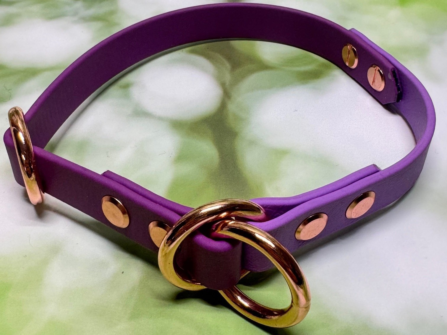 Zugstopphalsband zweifarbig , 16 mm , 33 cm , Biothane Grape - Amethyst Orchid , Hardware vernickelter Stahl roségold